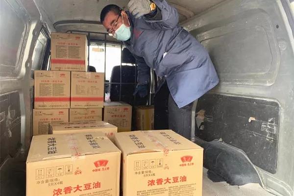 辽宁大区鞍山分公司经销商辽阳晟禾商贸公司,在疫情期间为保障粮油产品的充足供应,组织起鲁花工作者,在安全防护下坚持为各卖场及时送货,保证货源,确保疫情期间不涨价、不断货。