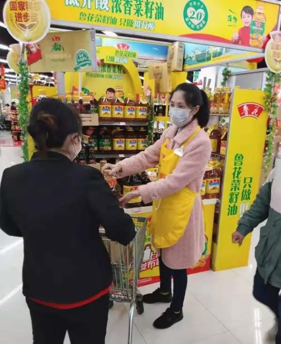 北京大区396名促销员,为保障一线食用油的供应,除调休、部分隔离卖场及因疫情无法返回者外全部在岗。他们中有春节旅游听闻疫情后迅速采购口罩背回国捐助的干部;有独当巨大工作量、把休息机会都让给同事、假期一天都没休的可爱销售员;有践行鲁花大爱,捐赠物资支援疫情防控的经销商……当大家谈疫色变的时候,是他们默默用自己的行动给出了答案,是他们,为业务正常开展提供了保障。